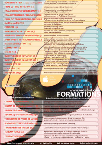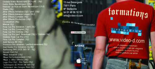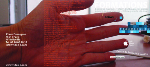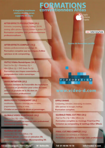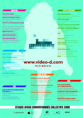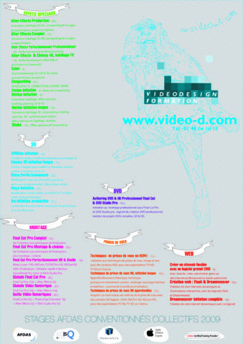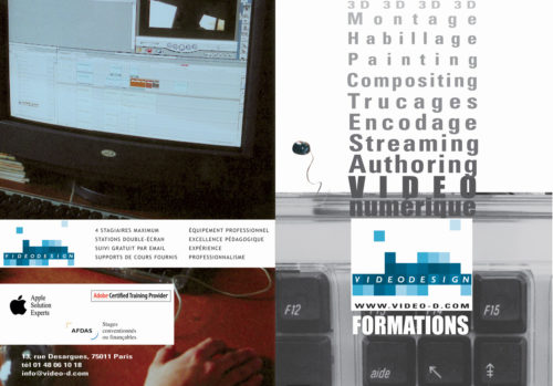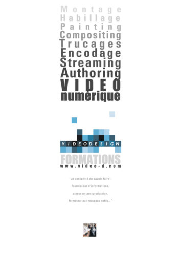 Mise en œuvre— En charge des 3 premières versions du site internet et de la communication papier de l’entreprise de production, post-production et formation Video Design.. Sites internet – base de données client – affiches – brochures – pubs magazines – habillage des stands pour les salons – animations 3D, Flash etc…