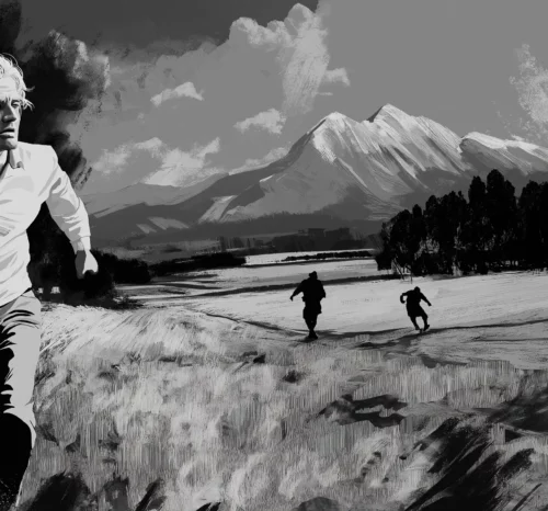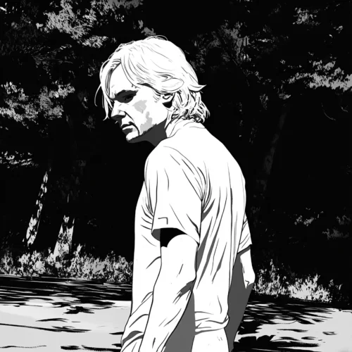 Adapter La bouche pleine de terre de Branimir Scepanovic. Pour le personnage principal, j’ai choisi les traits de Julian Assange, pour l’un des traqueurs, Beuys